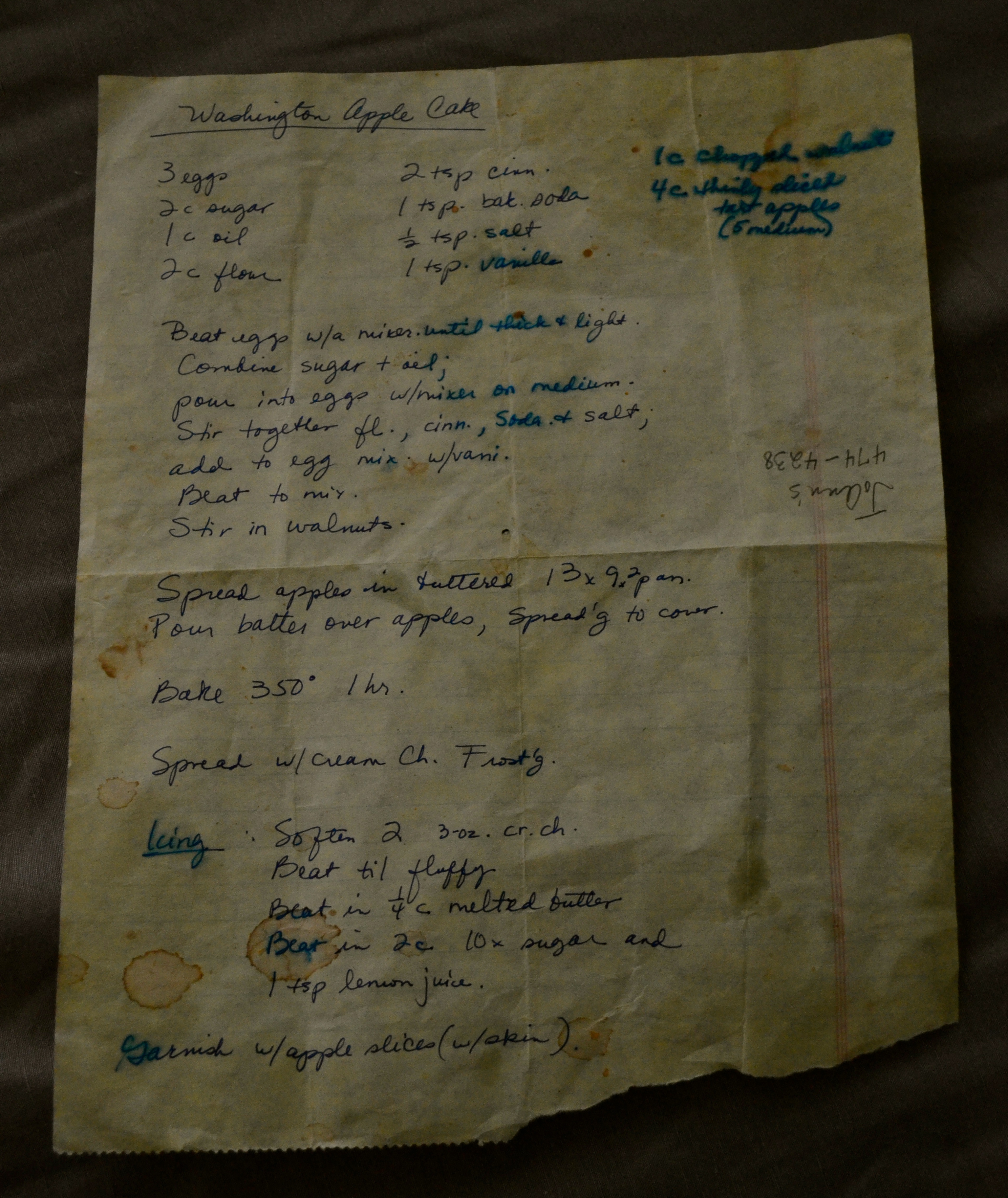 (It says Washington Apple Cake, but you can use any kind of tart apples)