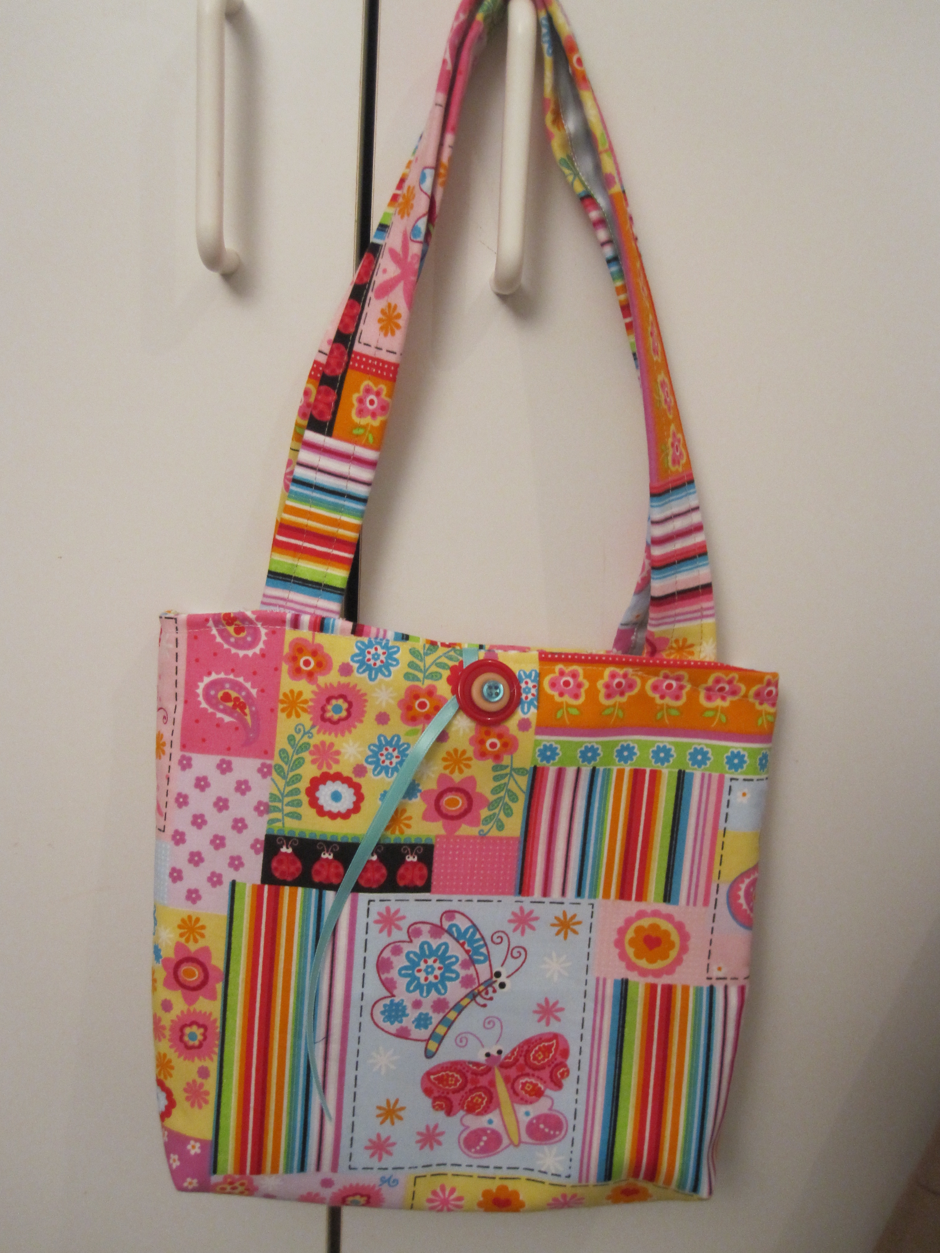 I made the tote bag about 10 inches long by 8 inches wide… just right for a little girl.