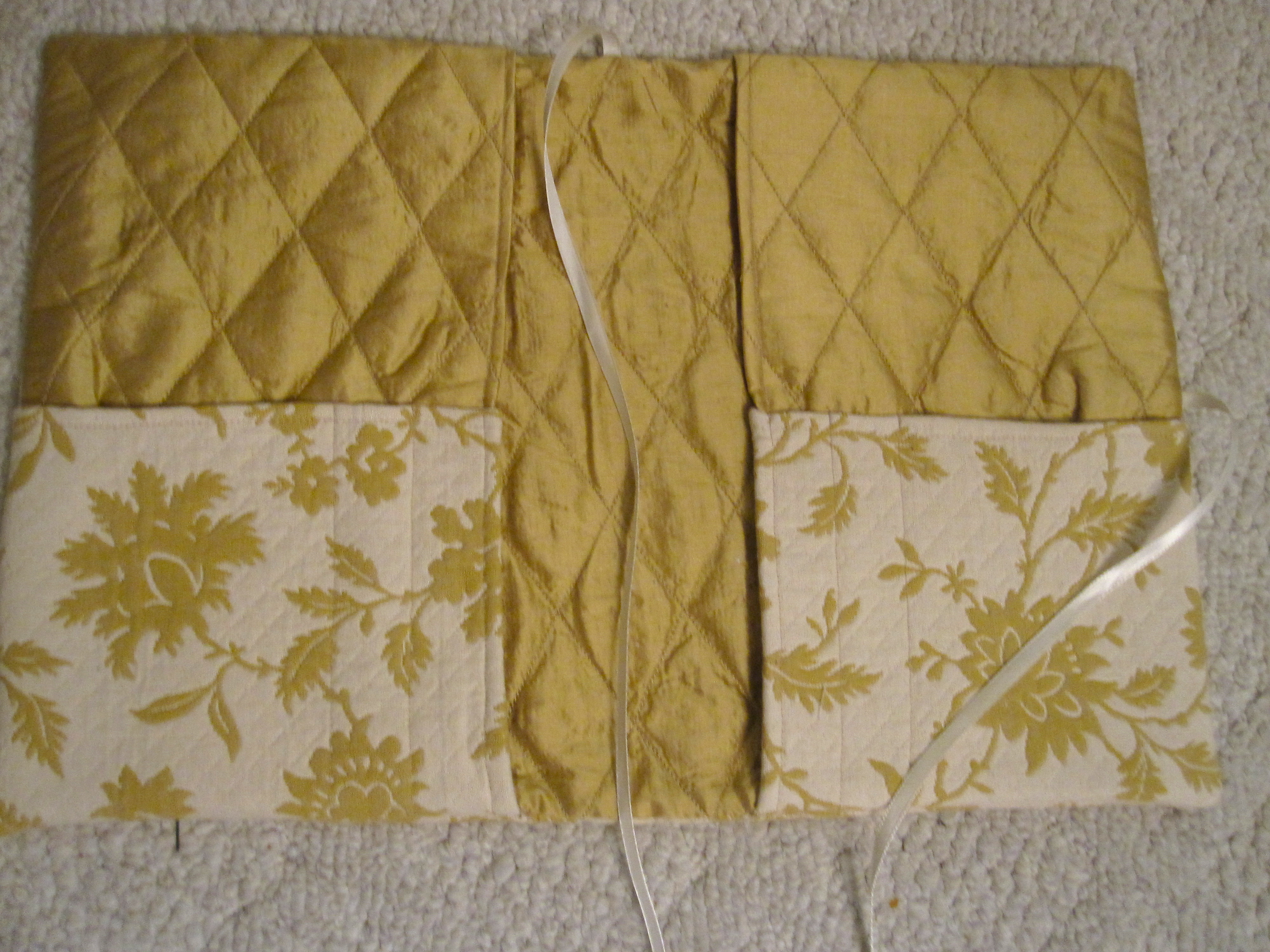 Here’s what the front outside looks like. I used three different fabrics, …really just pieces that I had left over from other projects. I liked how they looked together.