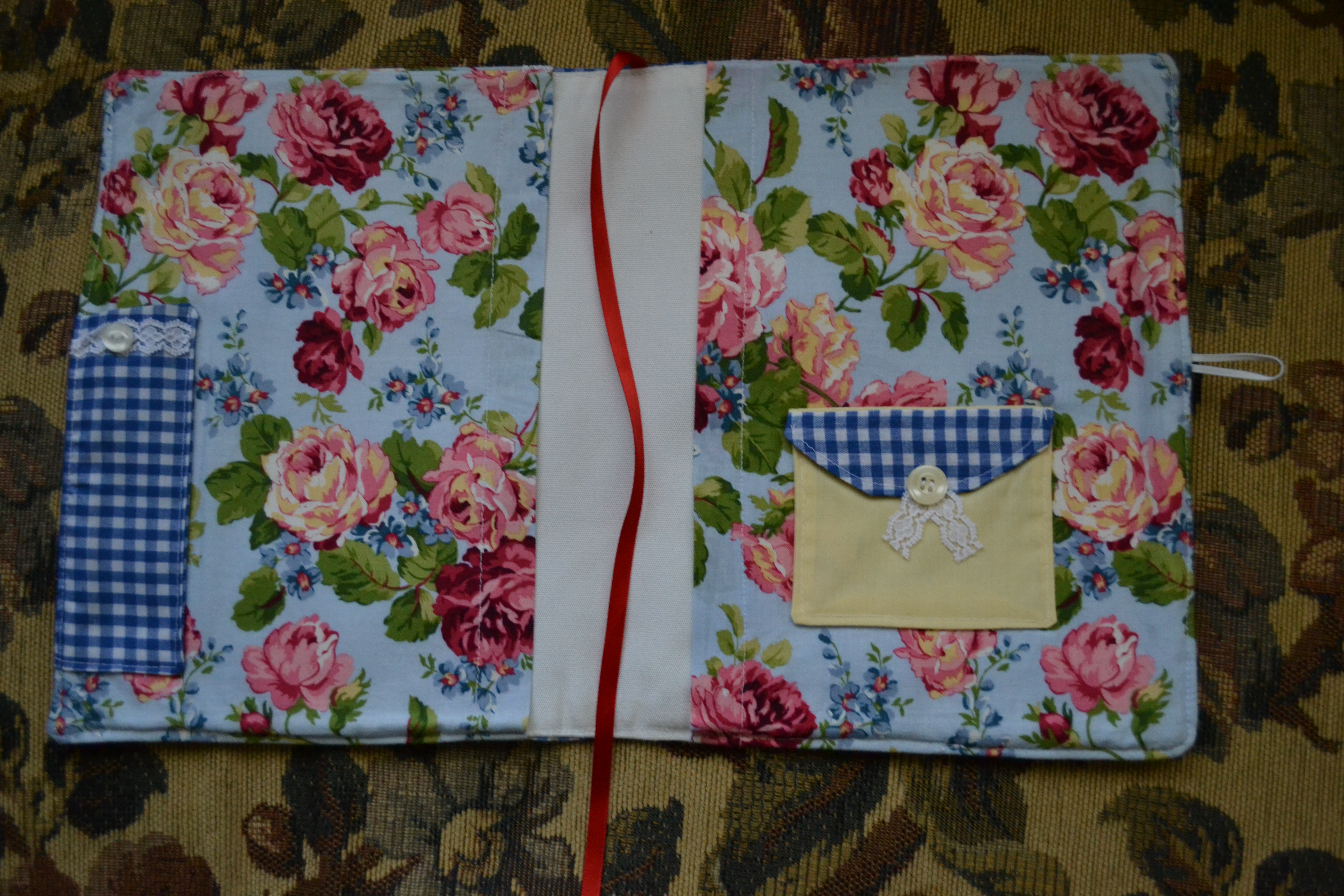 and in the back I added a cute, small pocket for little notebooks, bookmarks,